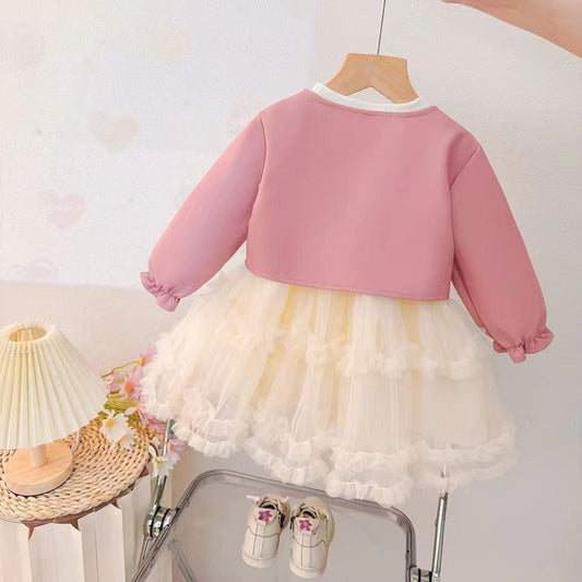 2pcs long sleeve leather jacket + tulle dress .