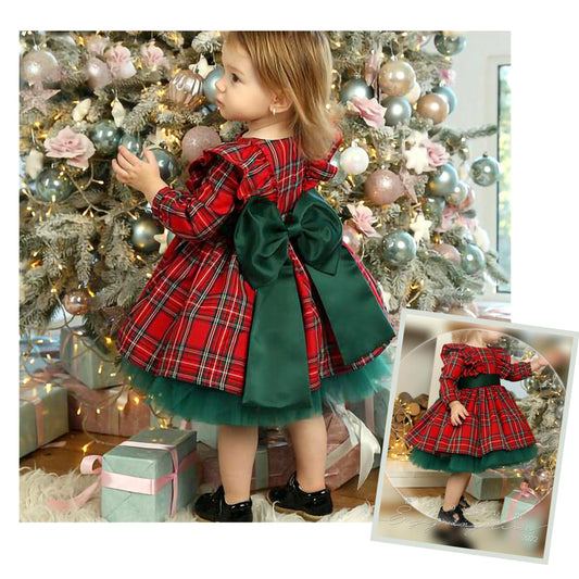 فستان أميرة عتيق الطراز مزين بفيونكة خضراء كبيرة في الخلف لعيد الميلاد (مع عصابة رأس)