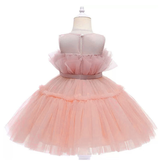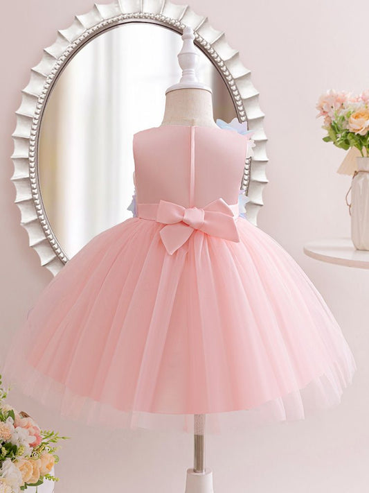 Girl's Sleeveless Princess Dress with rainbow color 3D Rose Embellishments