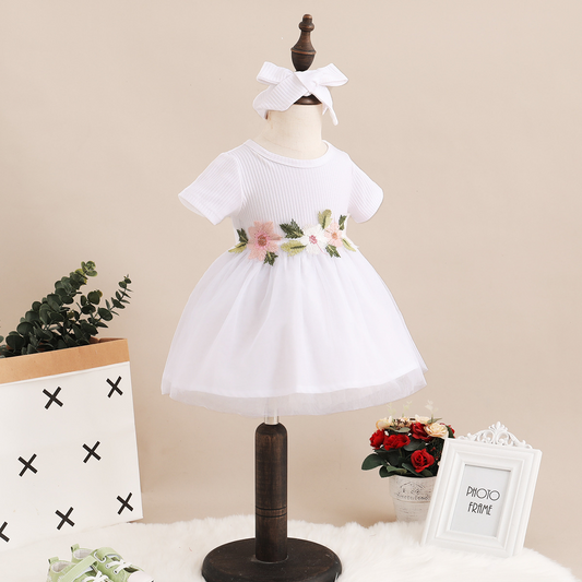 Set of 2 piece Short sleeve girl dress with flowers + headband 2 color