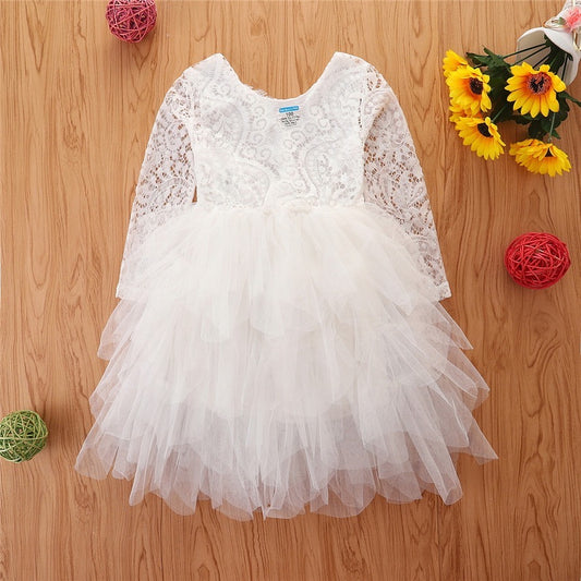 Kids long sleeve princess dress tutu skirt hollow lace sleeve