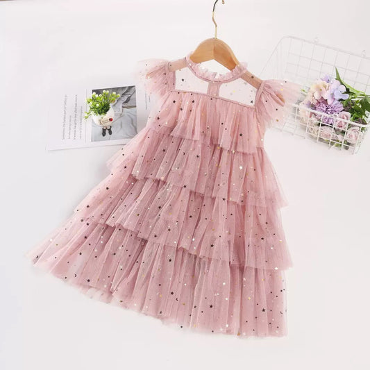 Layered Tulle Dress Flutter Sleeve Princess Cake Dress