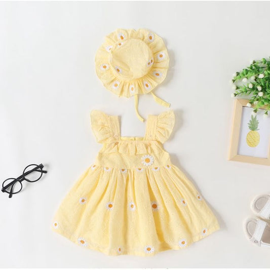 Out of stock2 pcs set baby dress embroidered daisy + hat