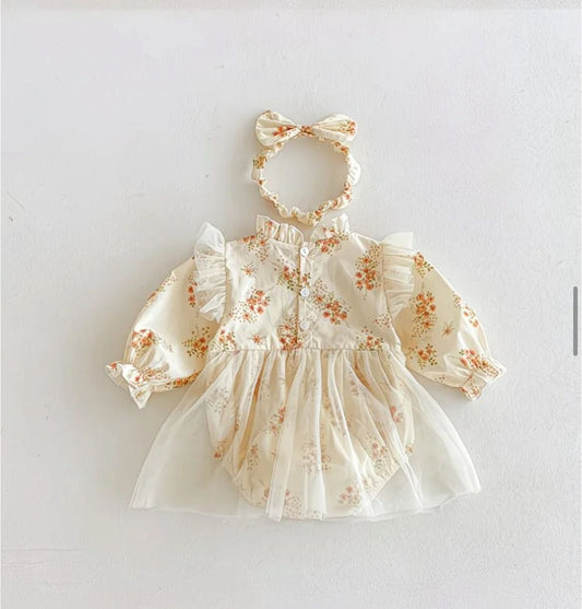 Set of 2pcs long sleeve baby romper dress + headband . 100% cotton