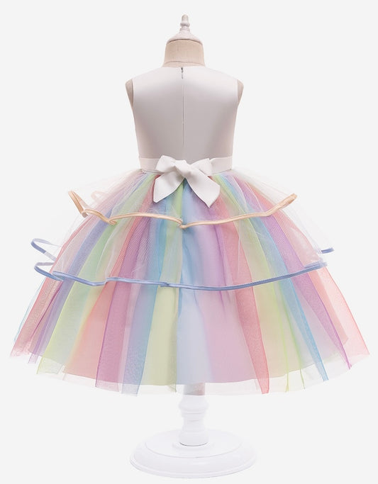 Girl princess dress with unicorn rainbow color