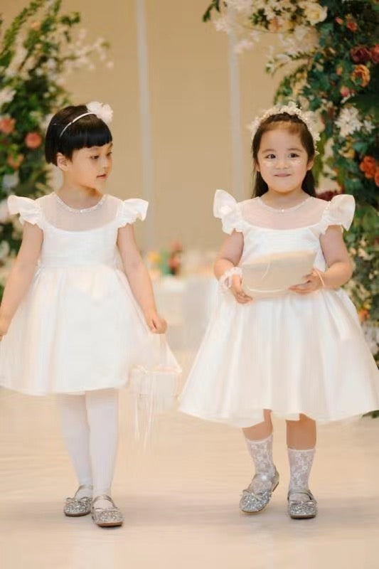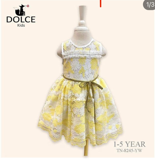 Set of 2 piece Short sleeve girl dress with flowers + headband 2 color