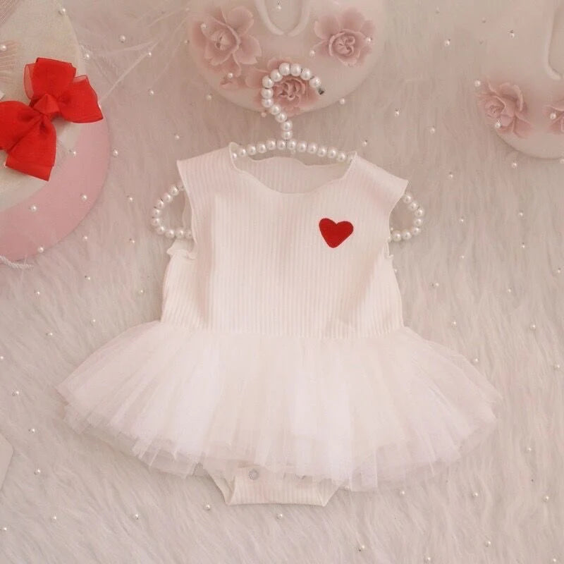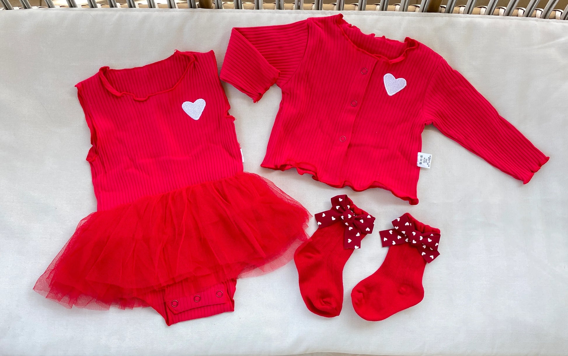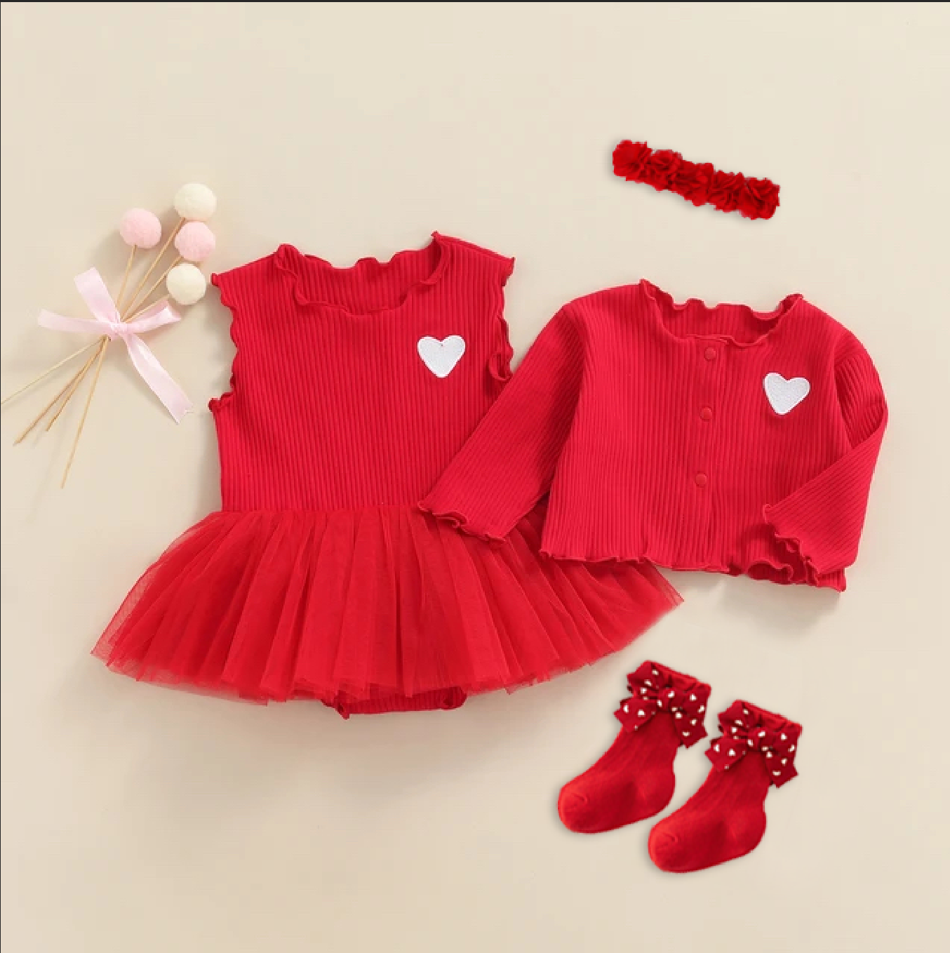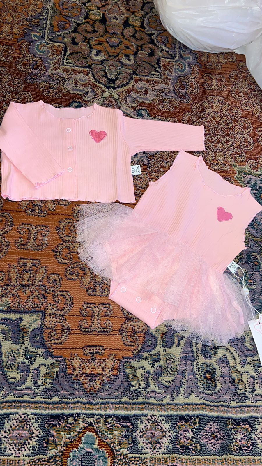 2 piece set 100% cotton knitted long sleeve baby embroidered heart cardigan+tulle dress 3 colors