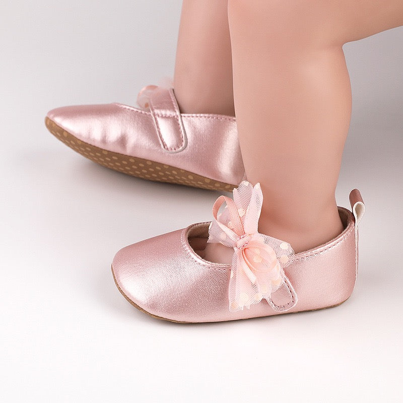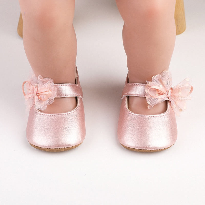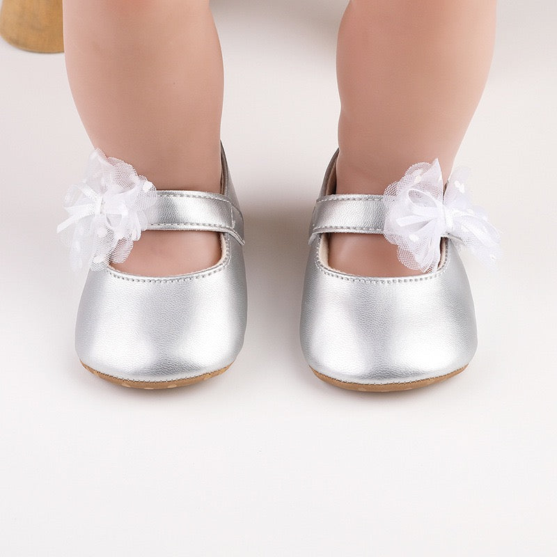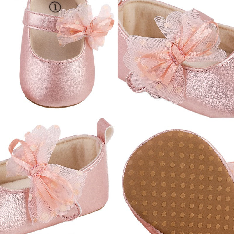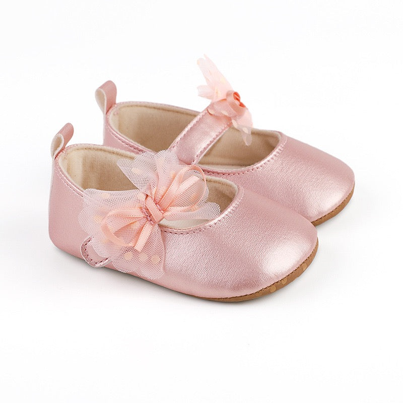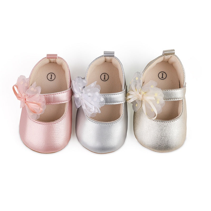 baby learher pre-walker shoes with flower soft sole 3 color