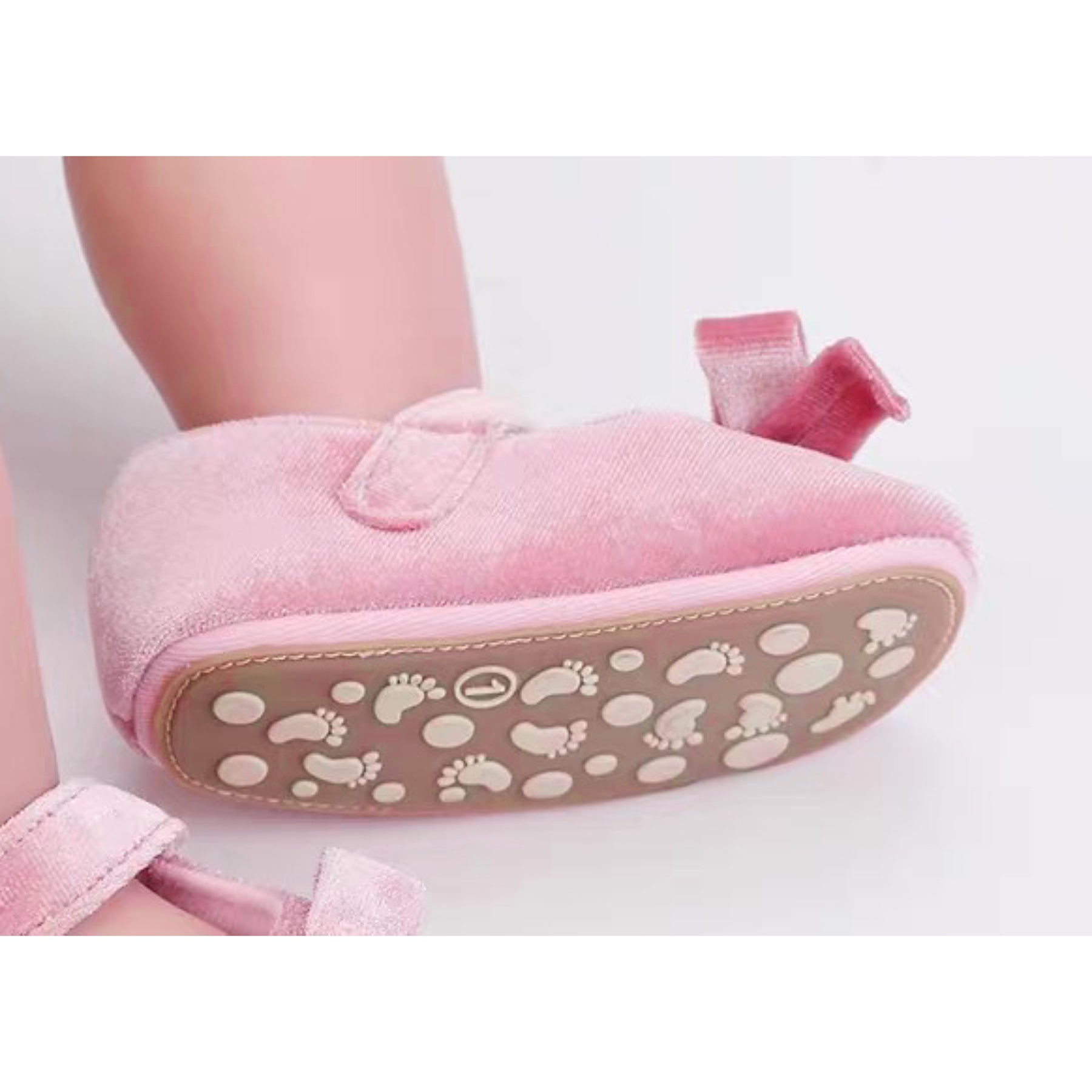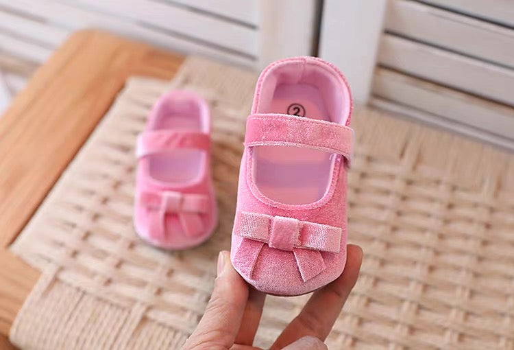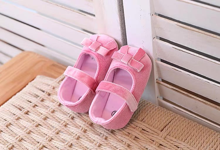 baby velvet pre-walker shoes rubber sole pink