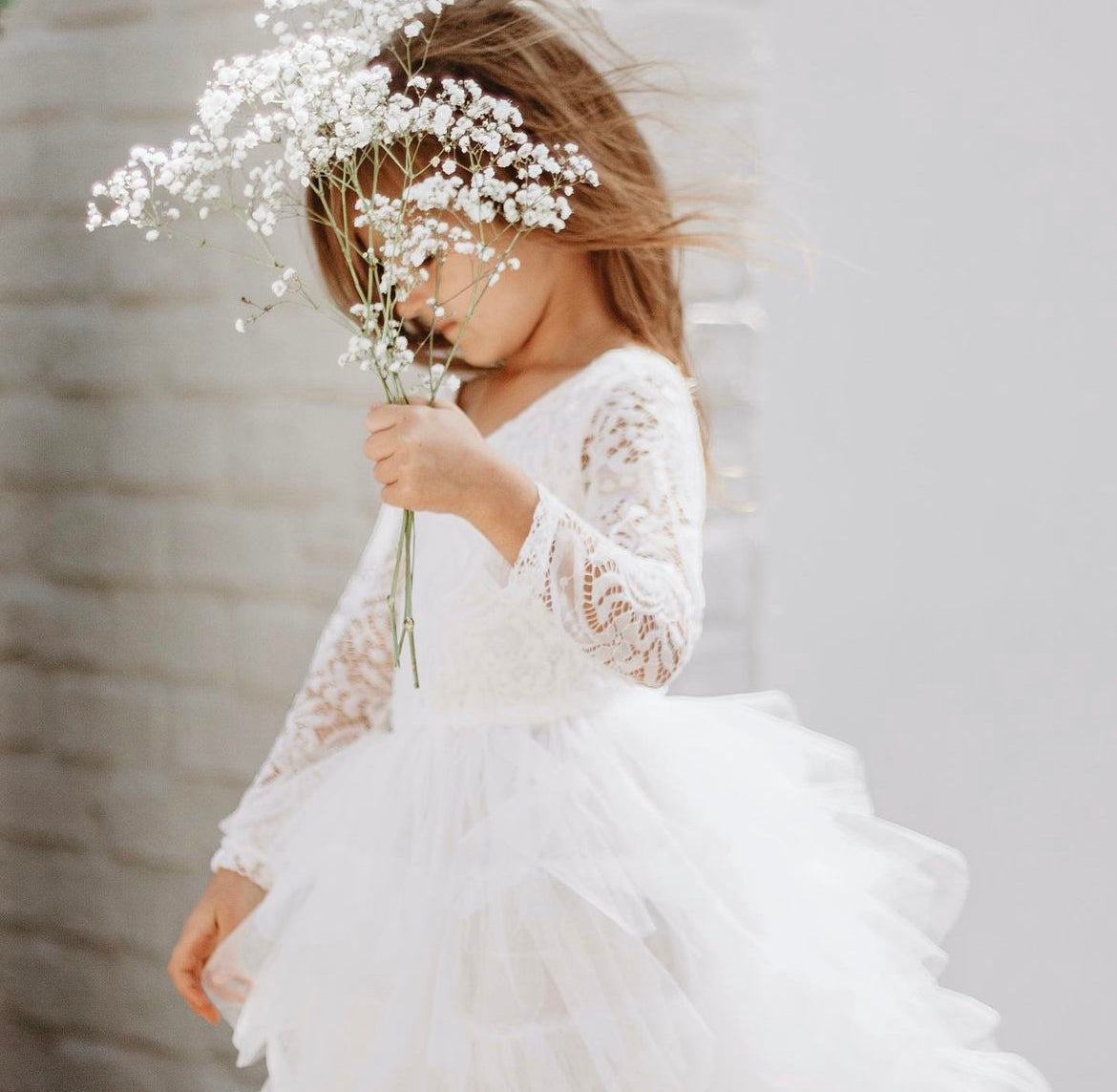 Kids long sleeve princess dress tutu skirt hollow lace sleeve