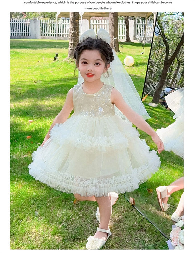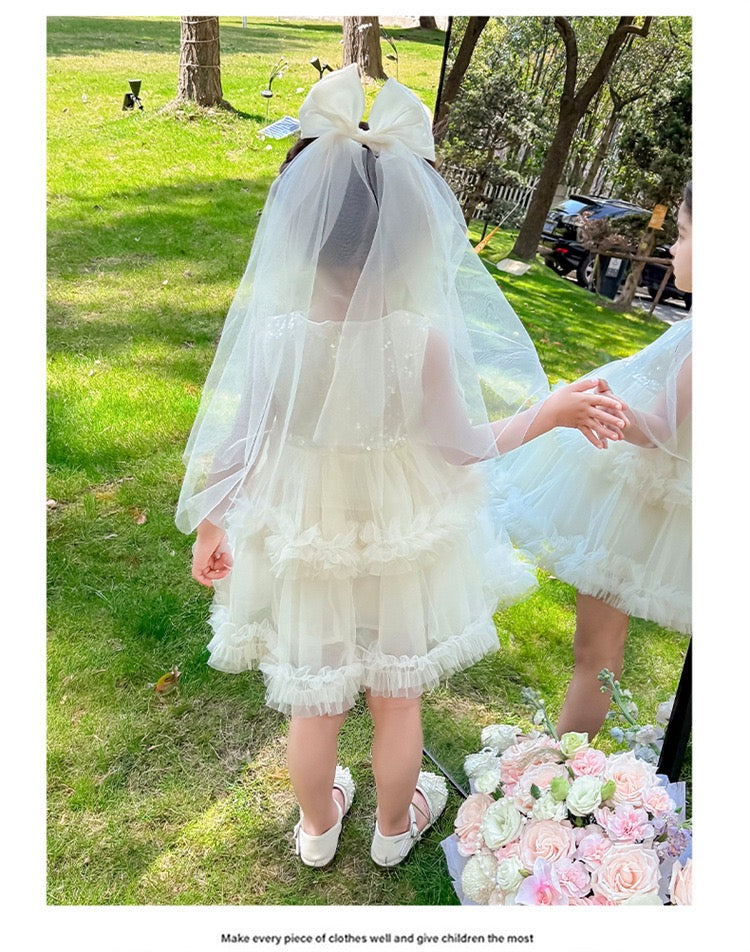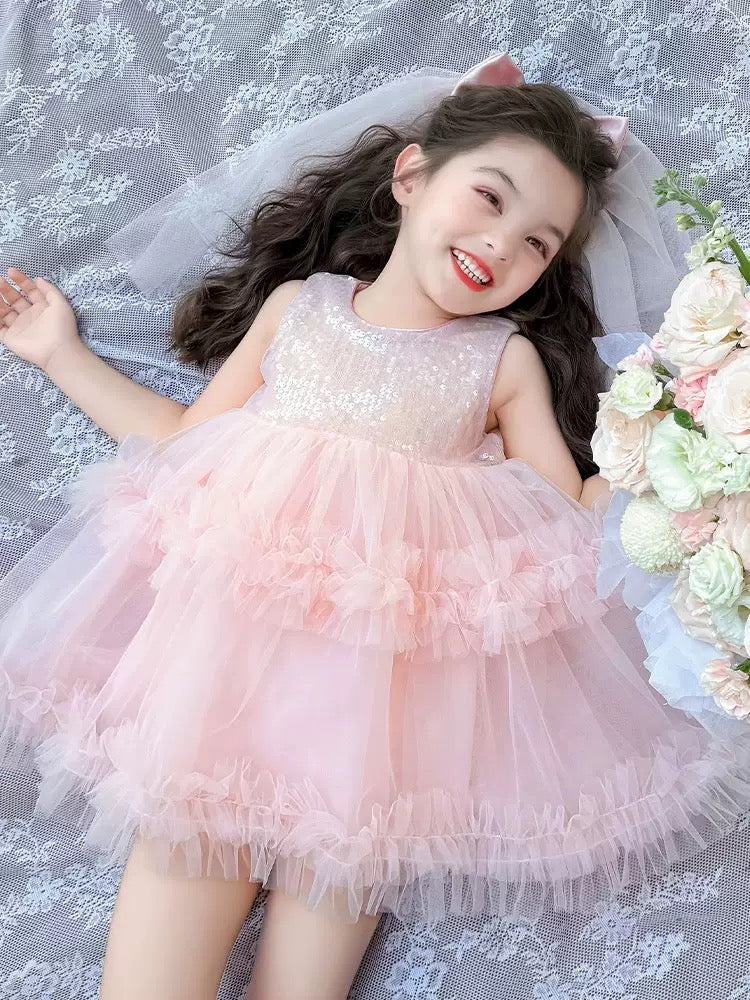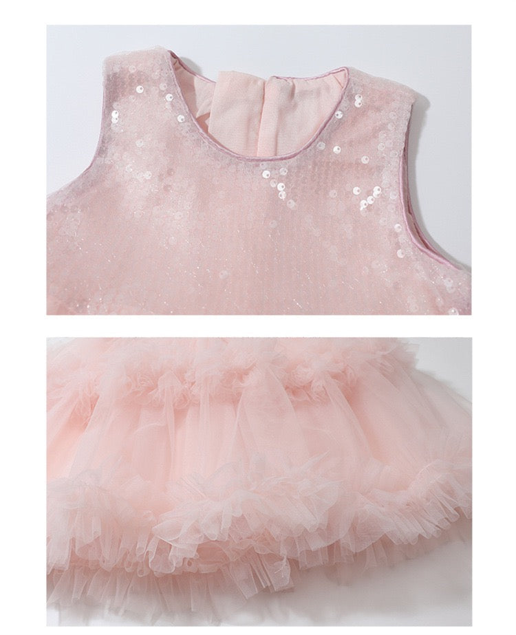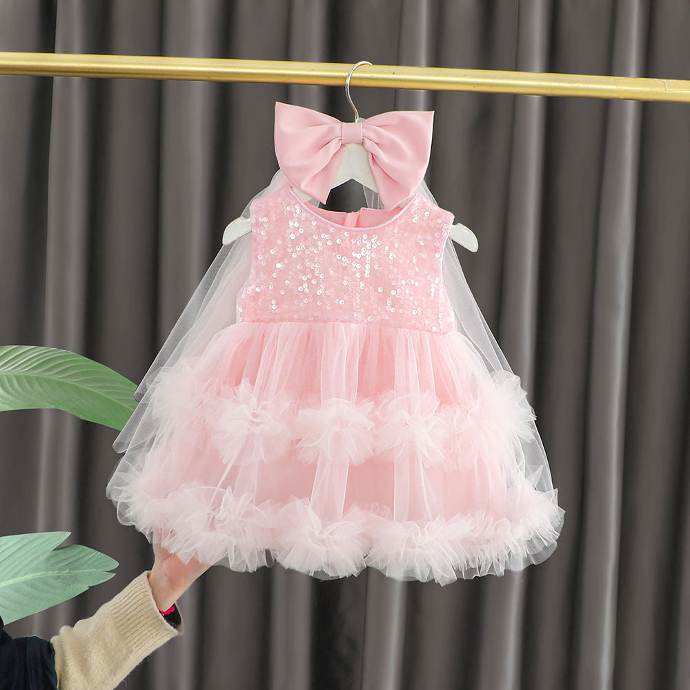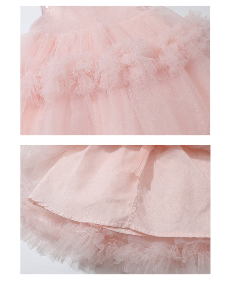 Set of 2 pcs Multi layered princess dress very soft with sequins + hair clip with big bow and tulle