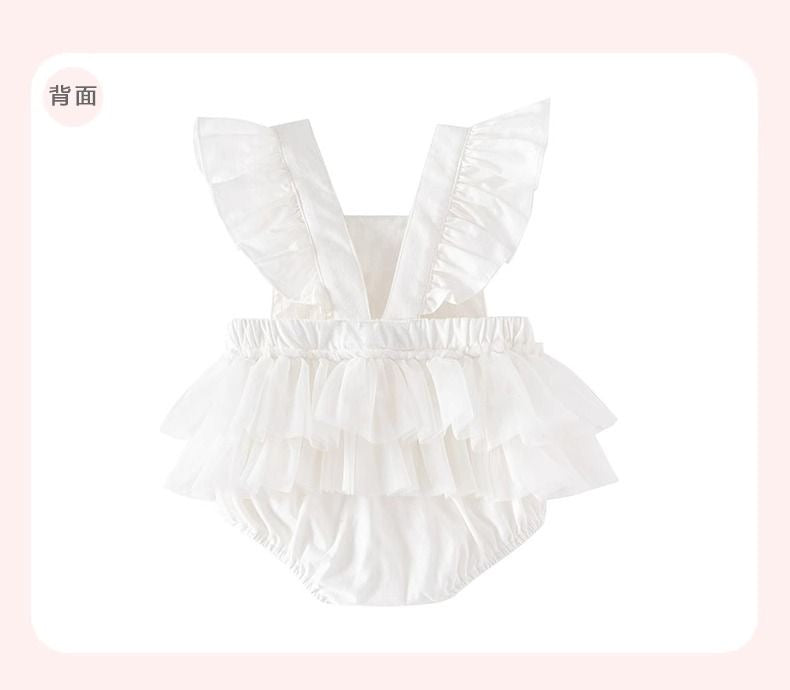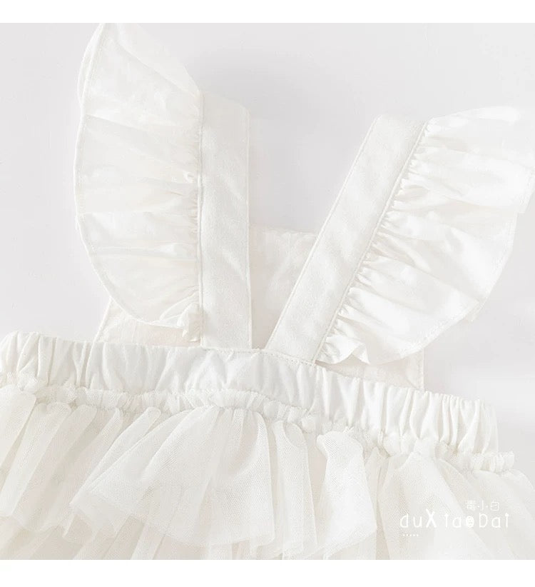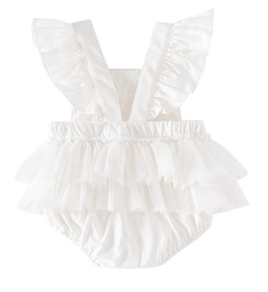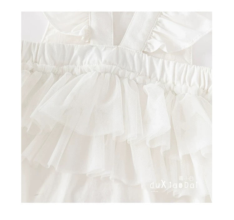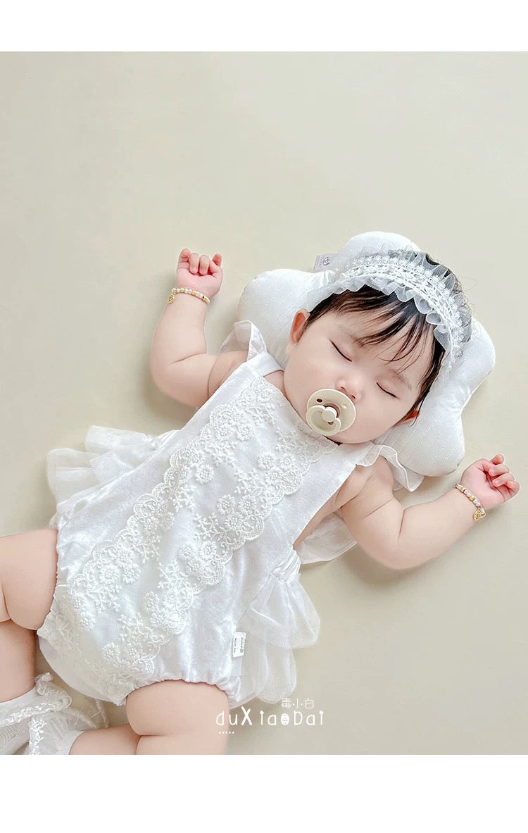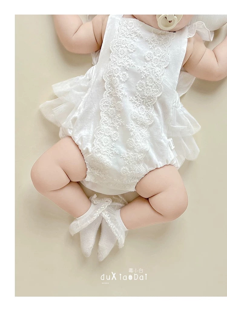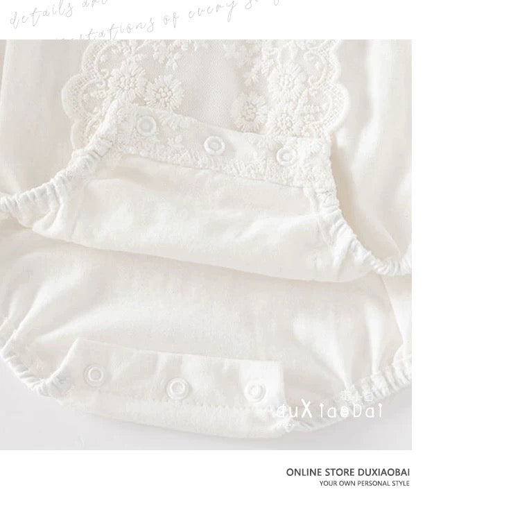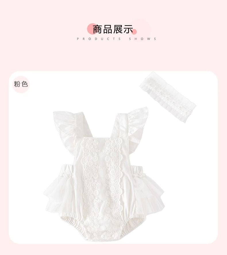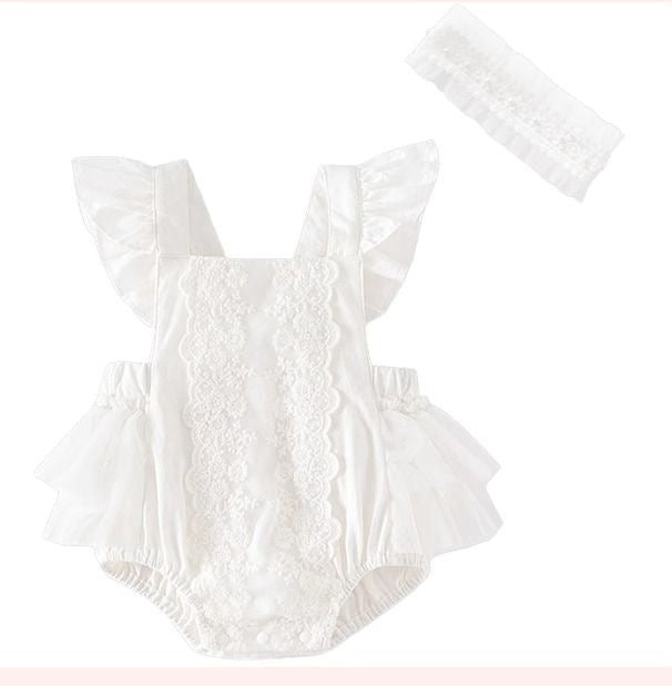 set of 2pcs Baby Girl vintage style Romper Dress with embroidered flowers + lace headband