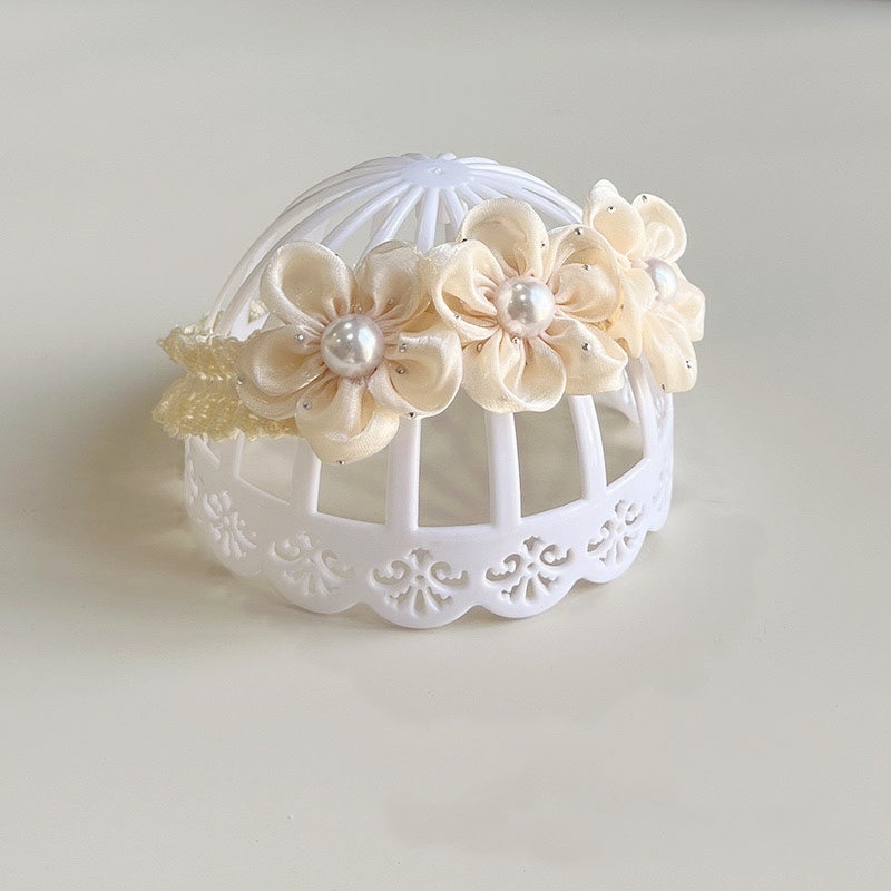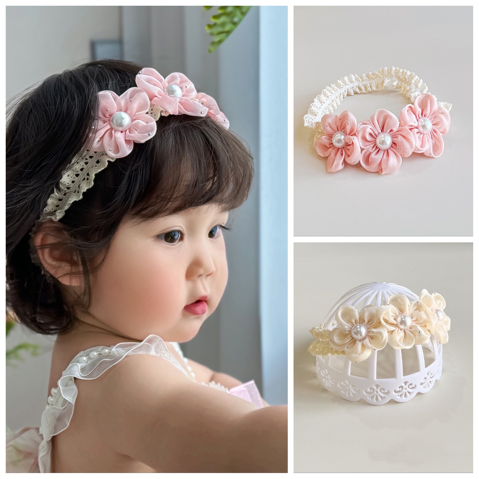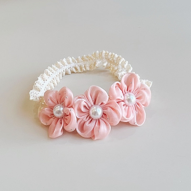 توكة - عصابة رأس مكونة من 3 زهور ولؤلؤ 2 لون