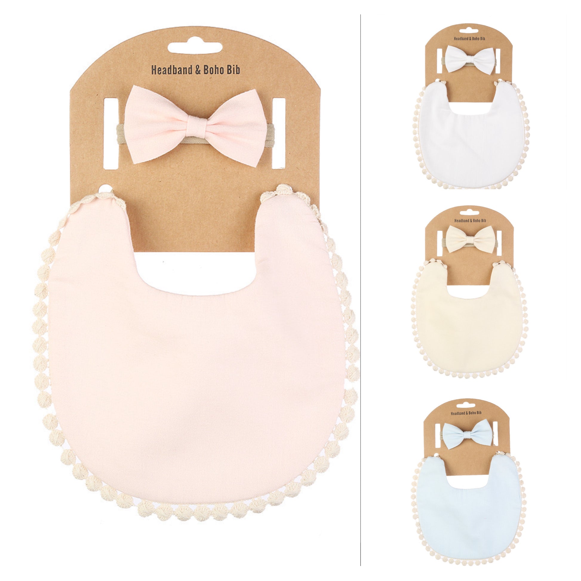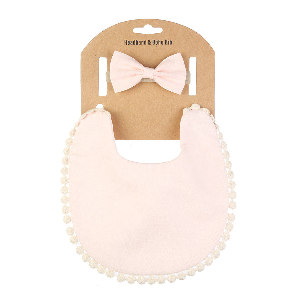 طقم مكون من قطعتين مريلة + رباط رأس للأطفال بلون سادة