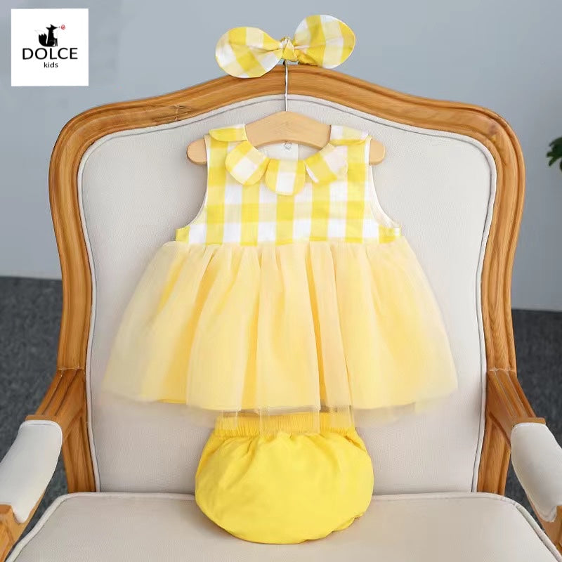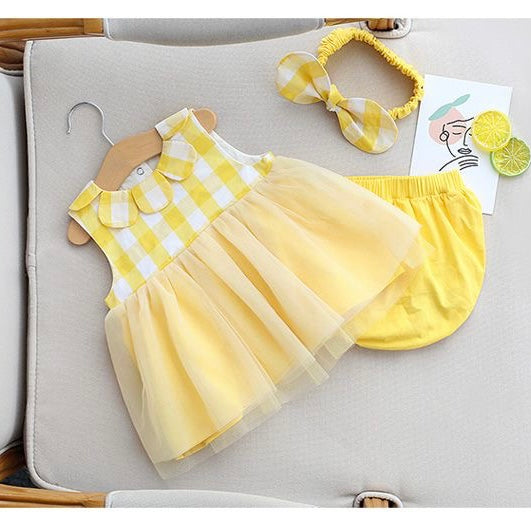 3قطع فستان أطفال قطن 100% + بنطلون قصير + توكة - فستان