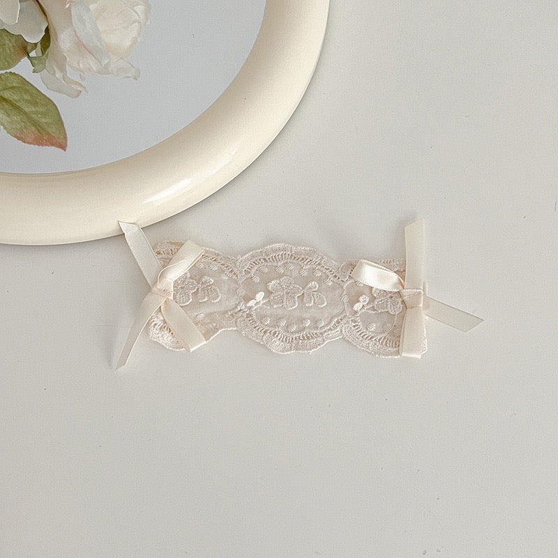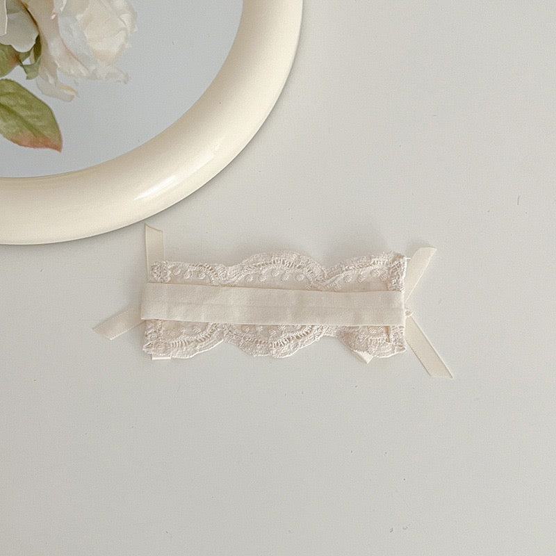 Baby beige lace romper dress long sleeve + vintage lace headband