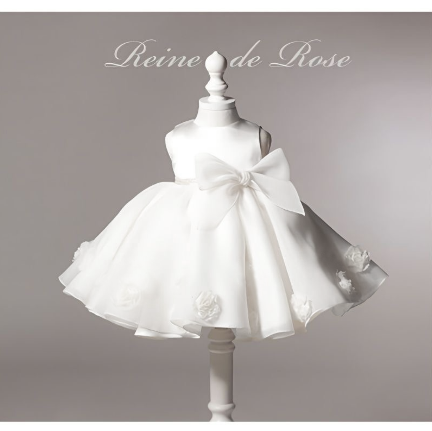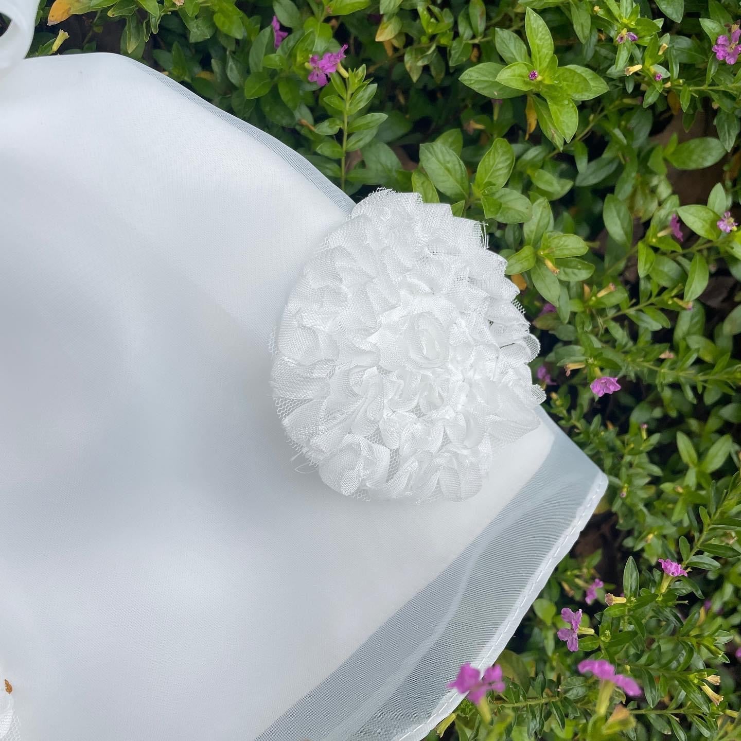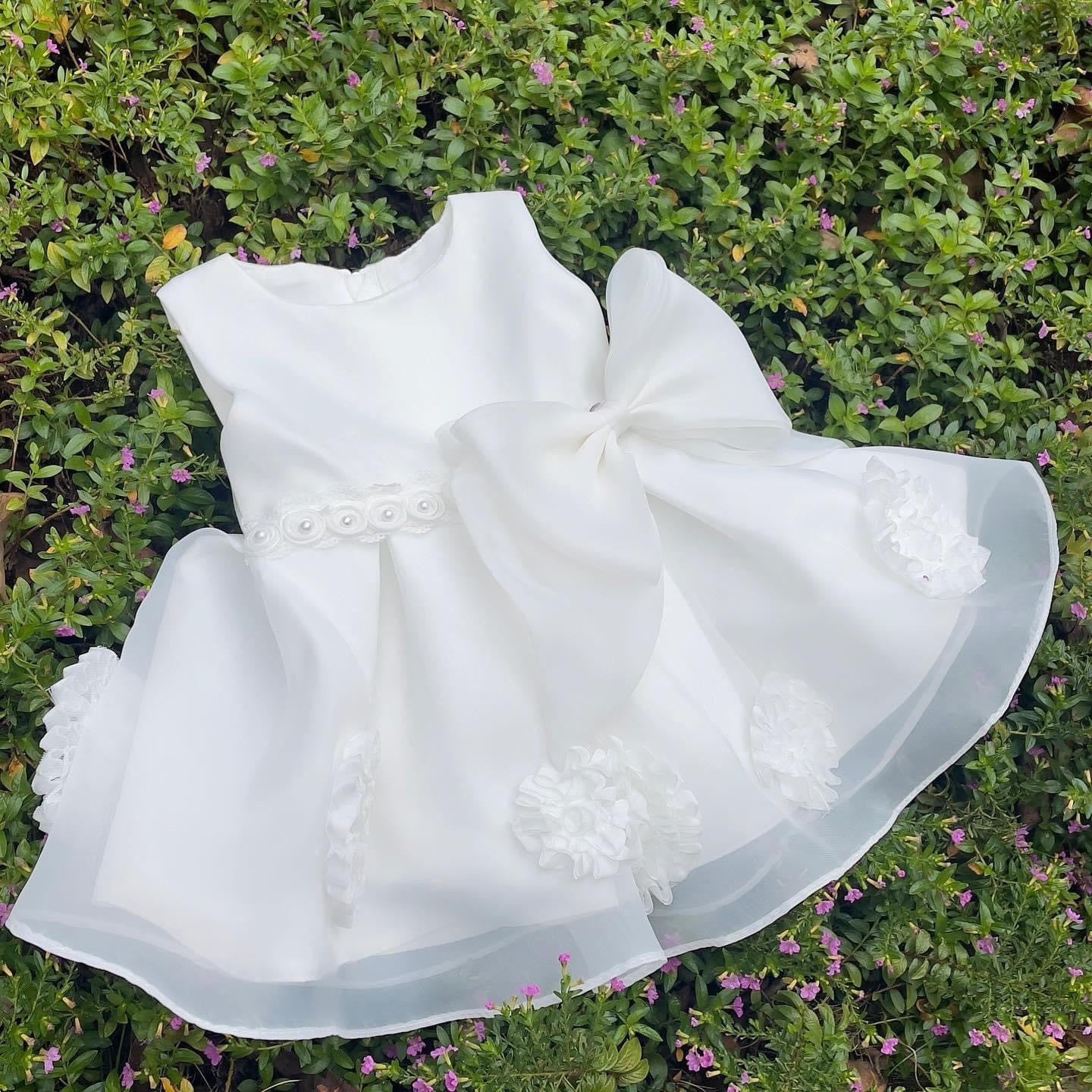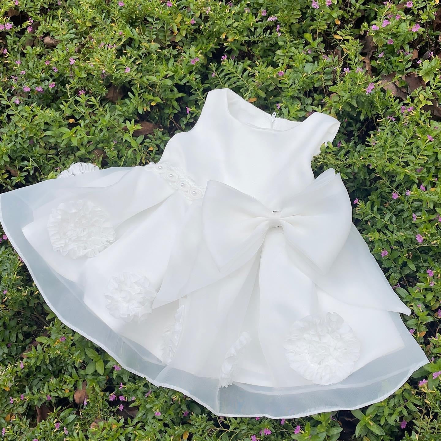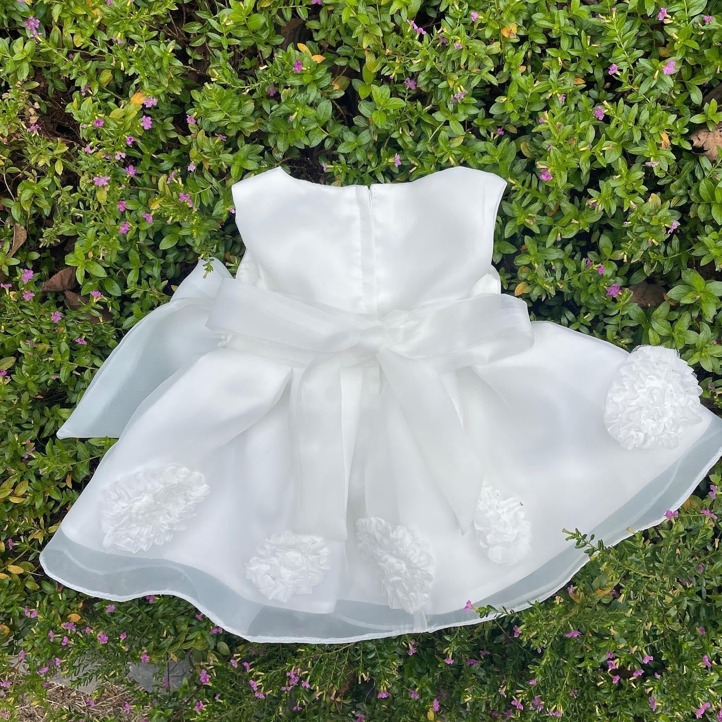 فستان أطفال أنيق مع زهور و توكة كبيرة باللون الأبيض