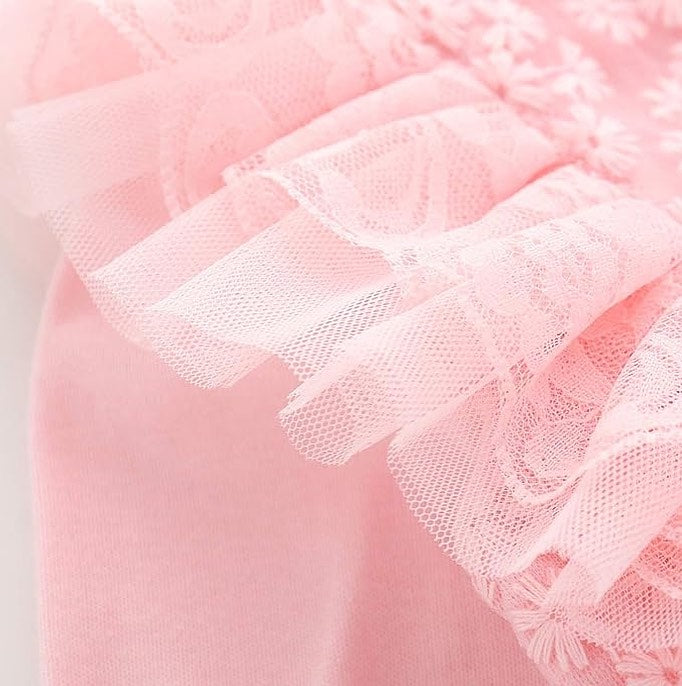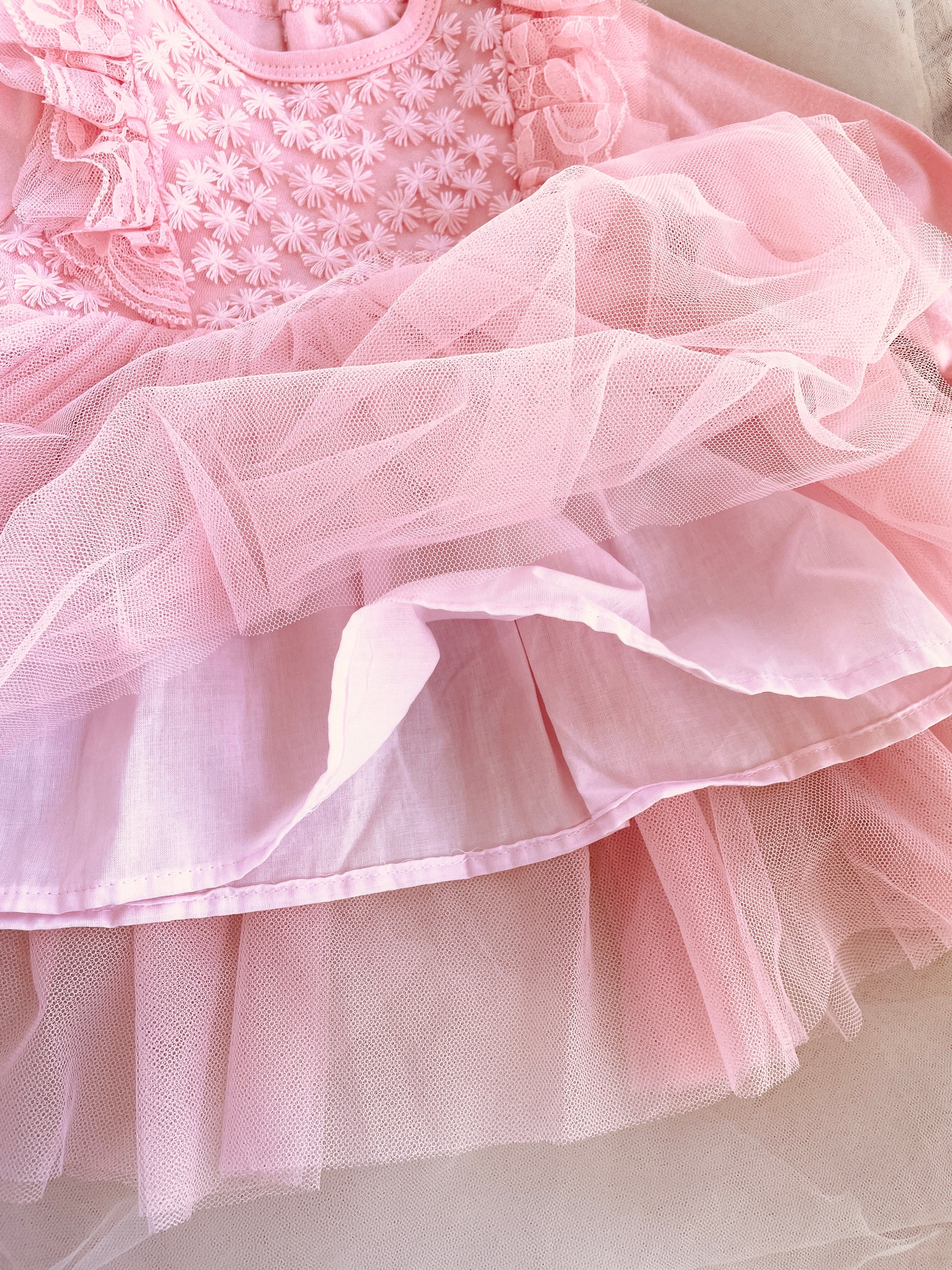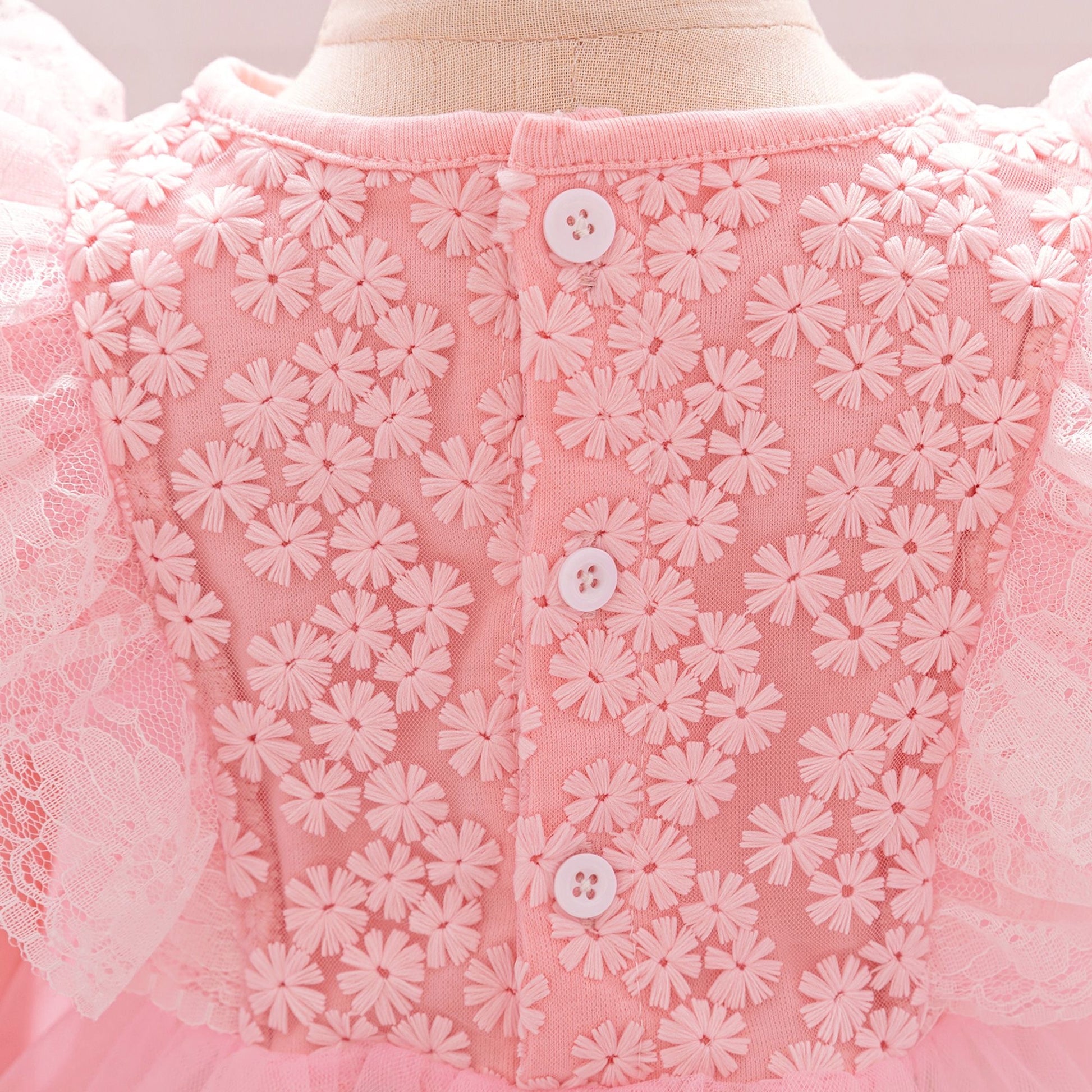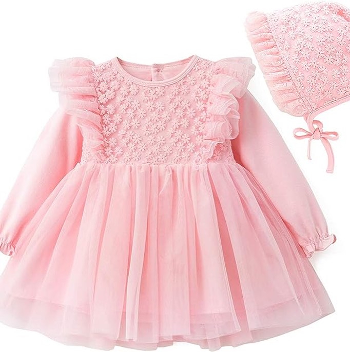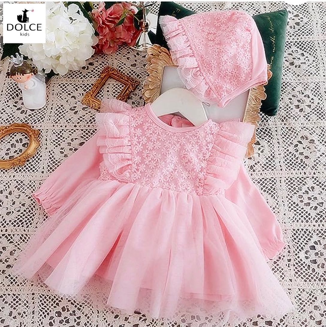 فستان طفل مع قبعة مطرزة الهندباء باللون البينك