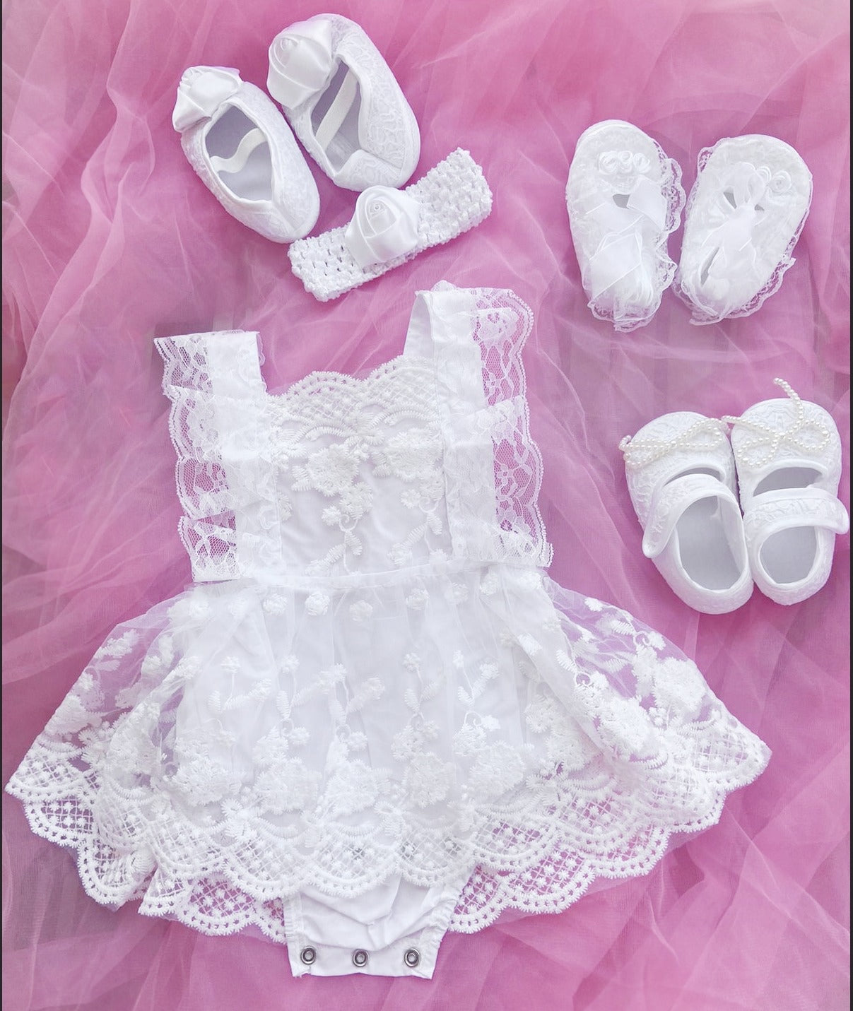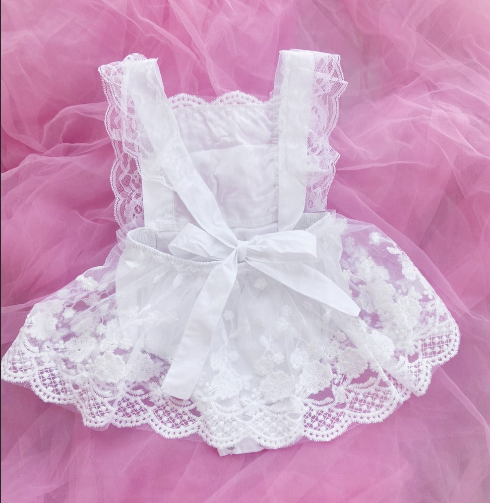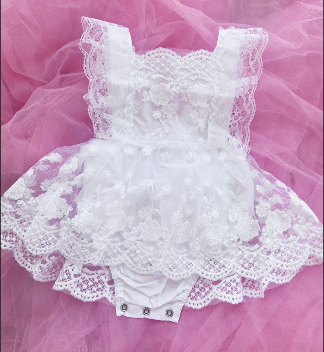 فستان رومبير دانتيل للفتيات الصغيرات بدون ظهر بوهو أبيض