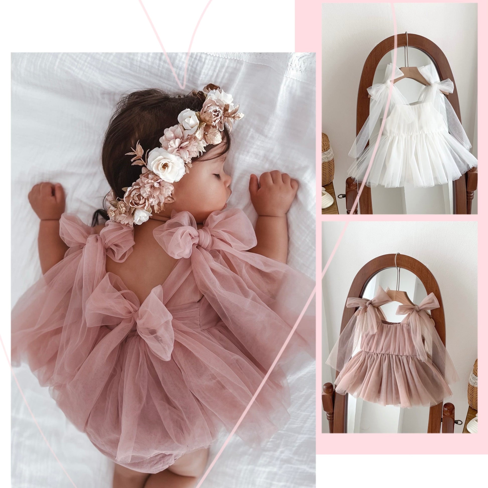 Baby Girl romper dress tulle skirt adjustable straps 2 color