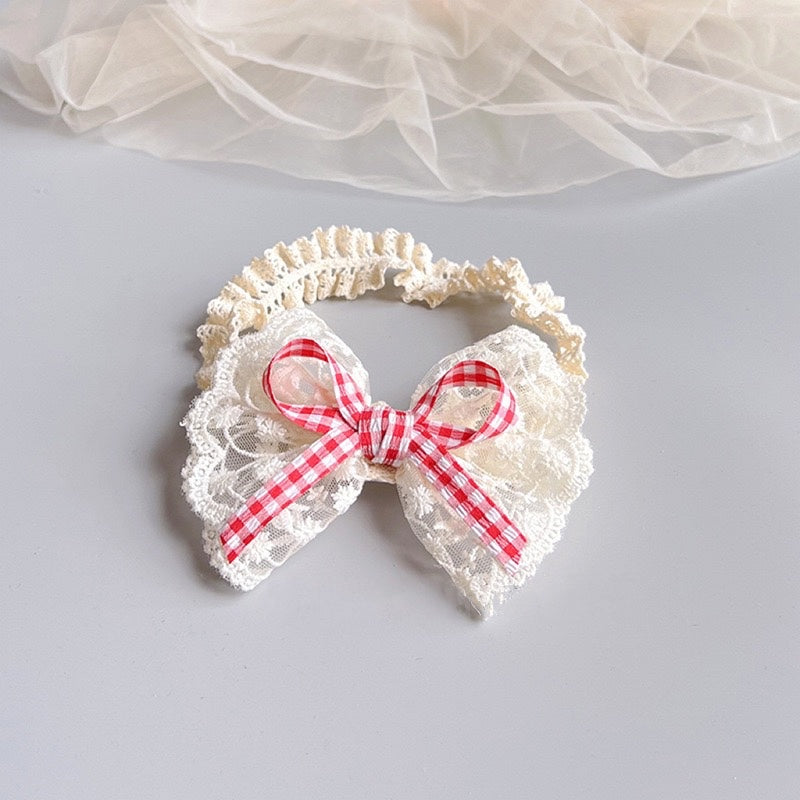 توكة عصابة رأس من الدانتيل باللون البيج مع عقدة فيونكة حمراء