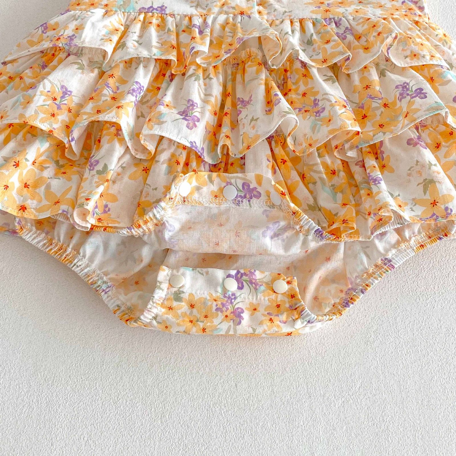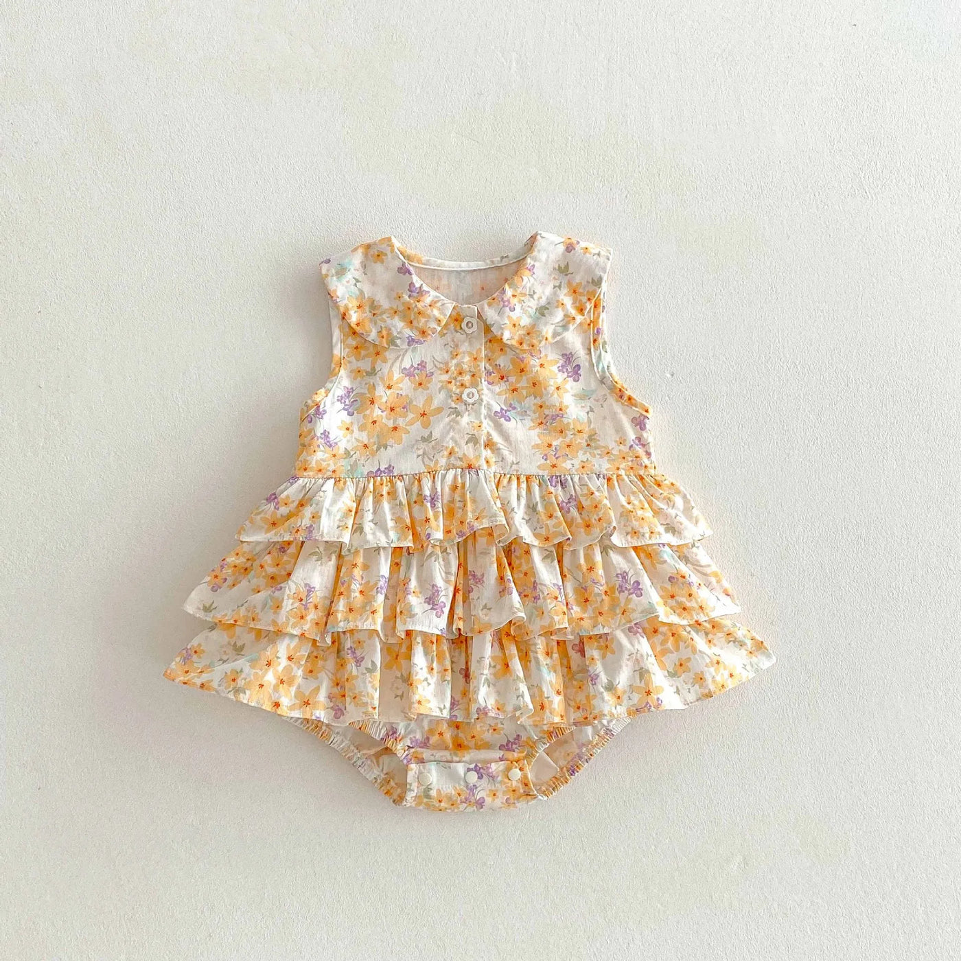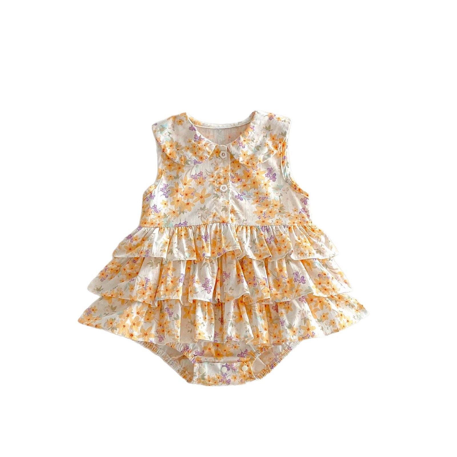 Baby collared floral romper dress with layered ruffles