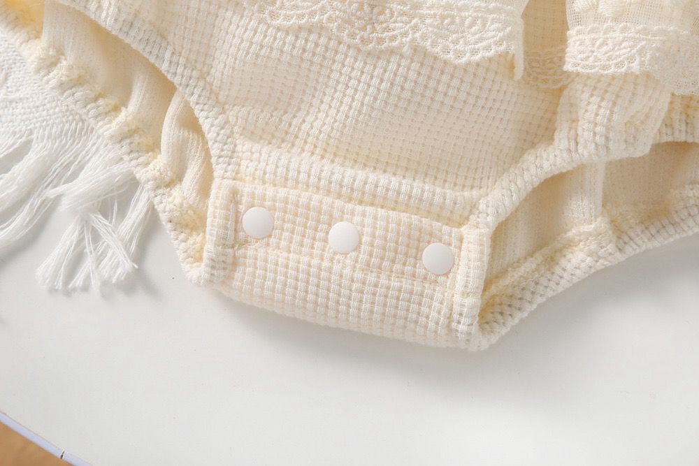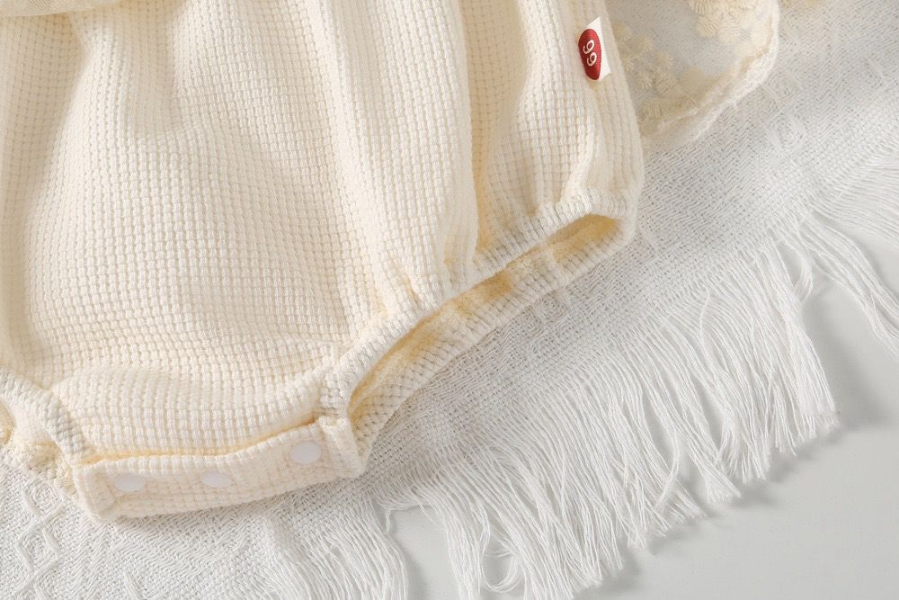 فستان بيج بأكمام طويلة من قماش الوافل مع عقدتين من القوس