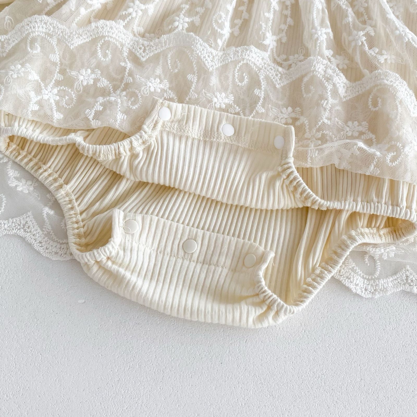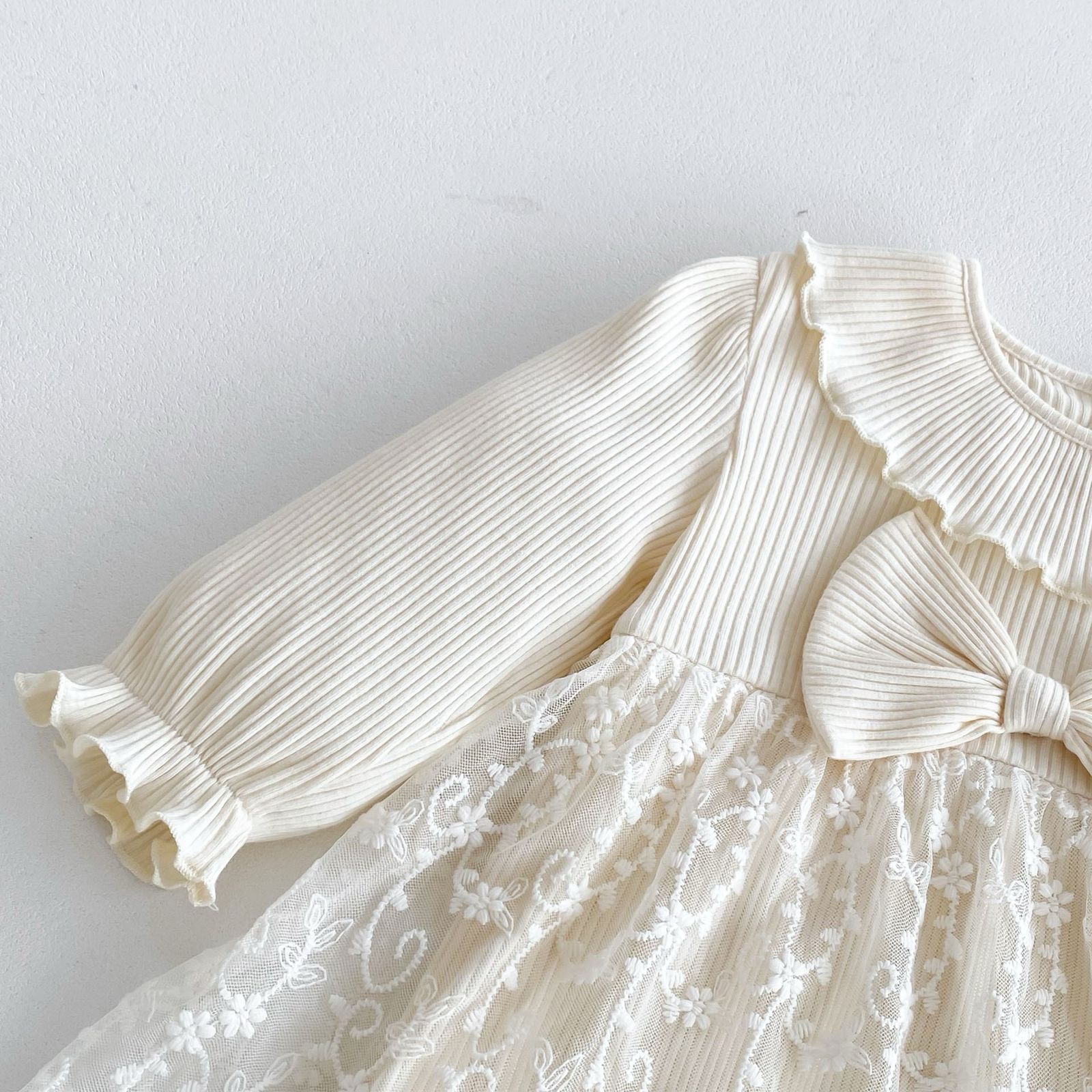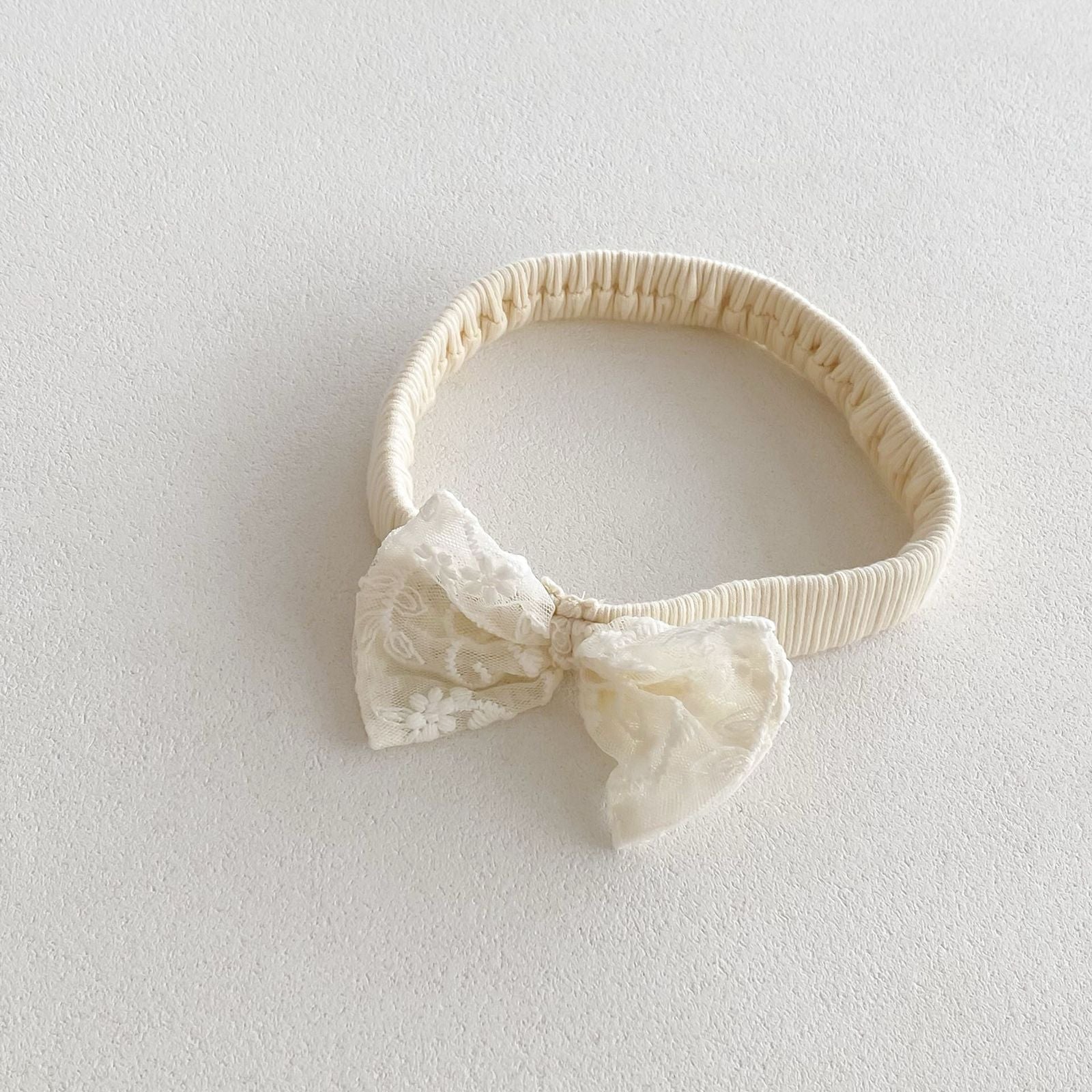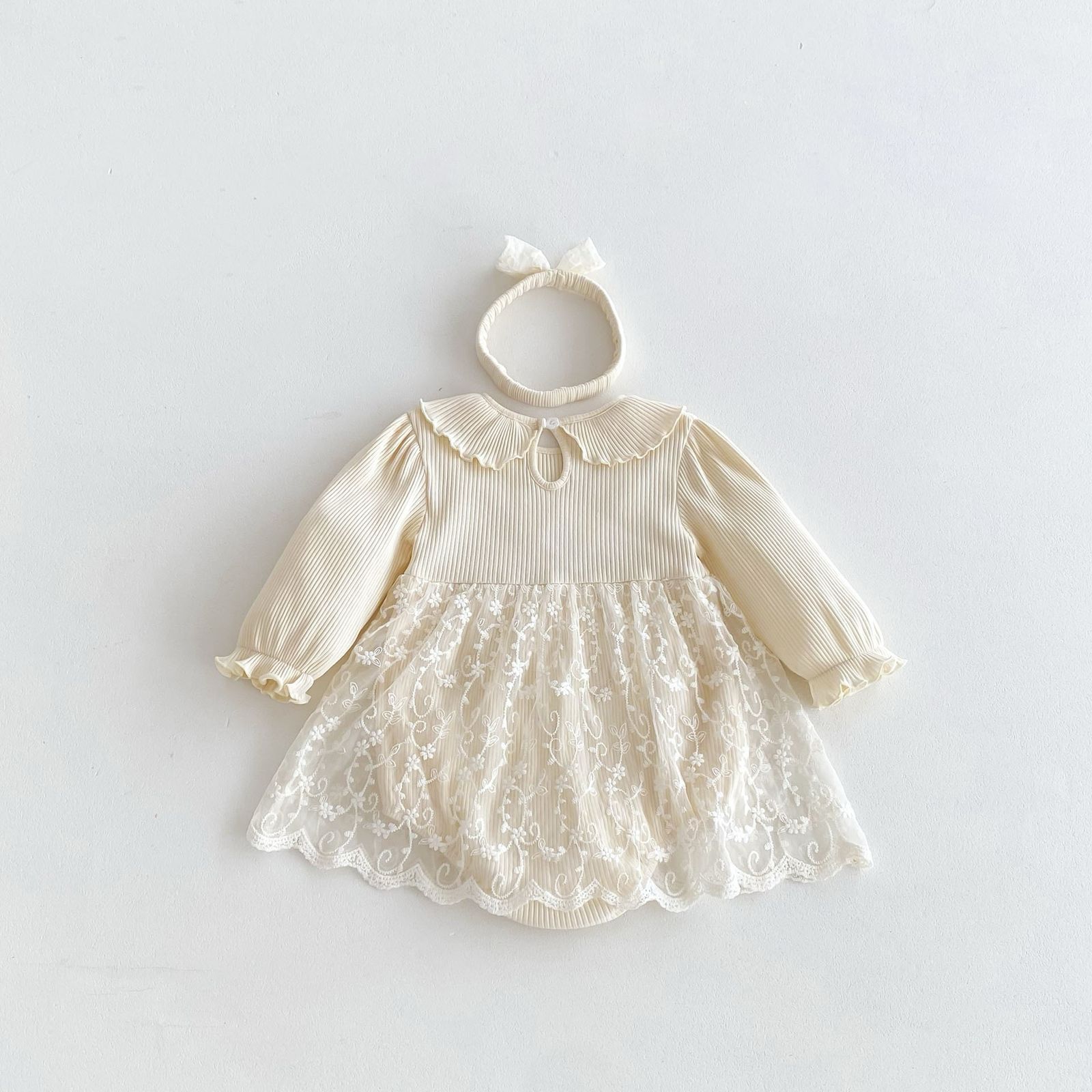 beige long sleeve romper with bow knot headband