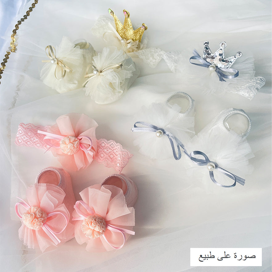 طقم من قطعتين جوارب للأطفال وعصابة رأس باللون البيج