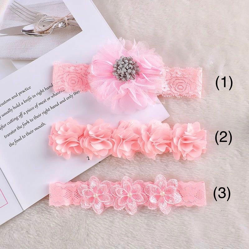 عصابات رأس مطاطية من الدانتيل باللون الوردي