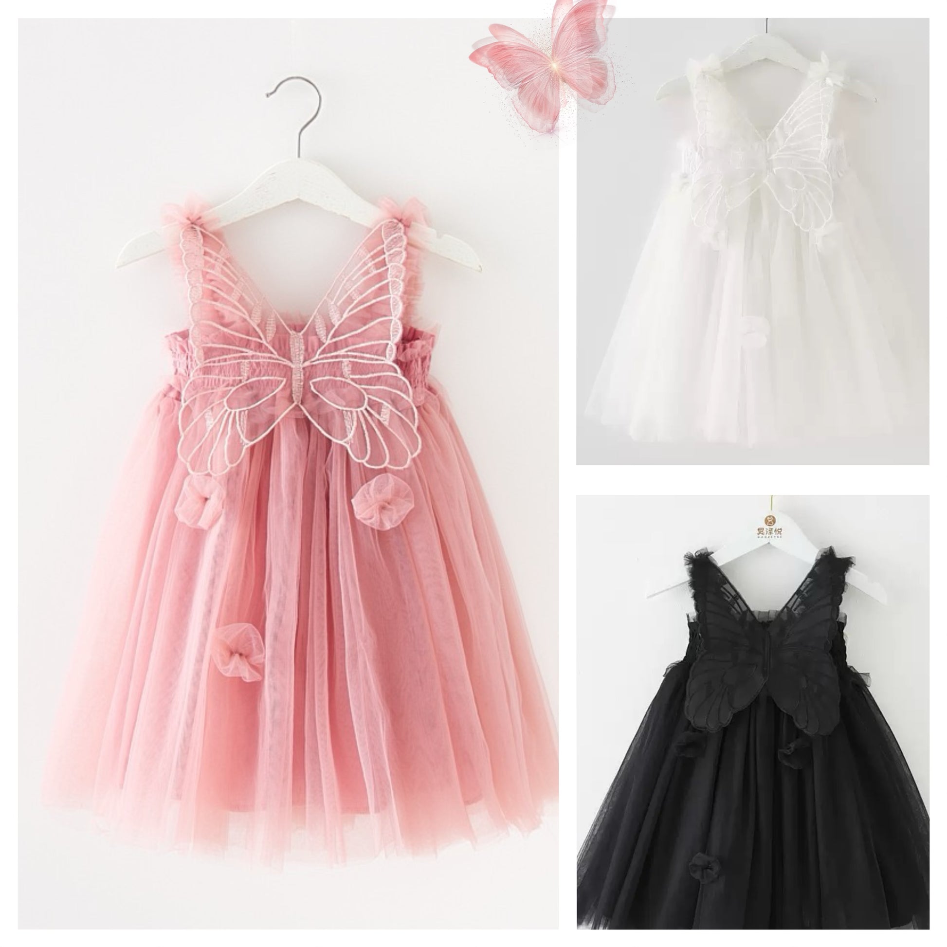 Multi layered Tutu dress with big butterfly at back and flowers
